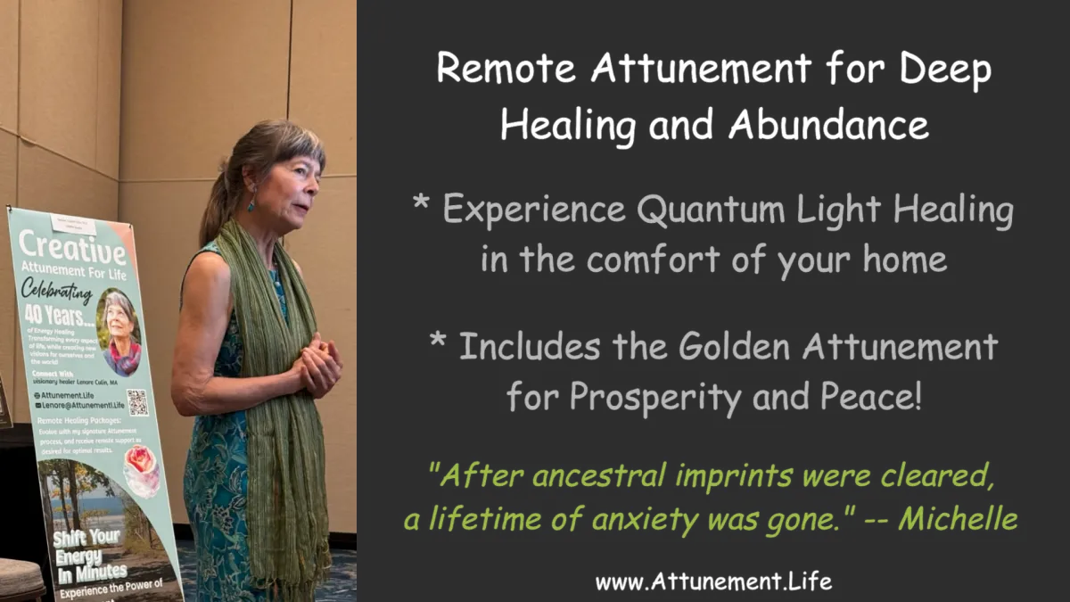 Lenore's approach integrates ancient wisdom with cutting-edge discoveries bridging science, health, and spirituality. Her methods work through the quantum field, which means: